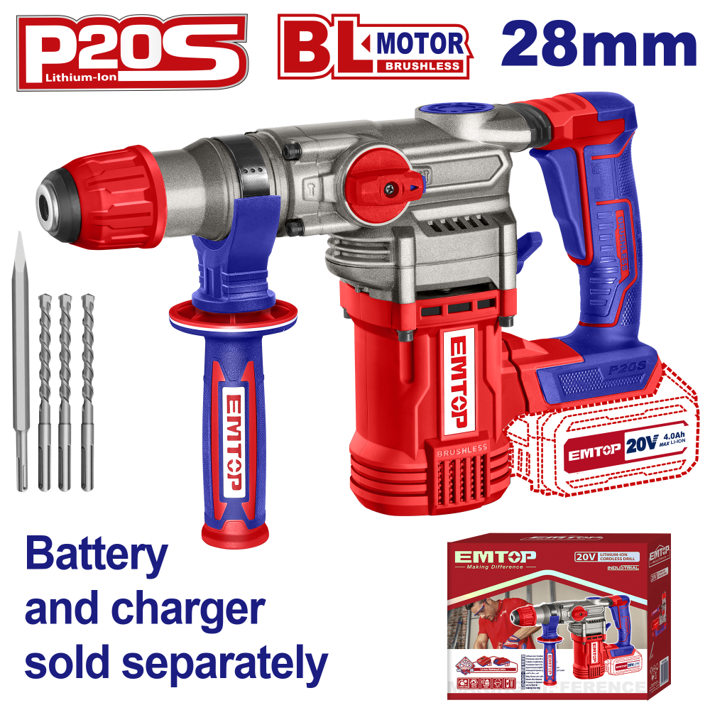 EMTOP BRUSHLESS ΣΚΑΠΤΙΚΟ ΠΕΡΙΣΤΡΟΦΙΚΟ ΠΙΣΤΟΛΕΤΟ 4,5J SDS-PLUS ΜΠΑΤΑΡΙΑΣ 20V ELRH20288