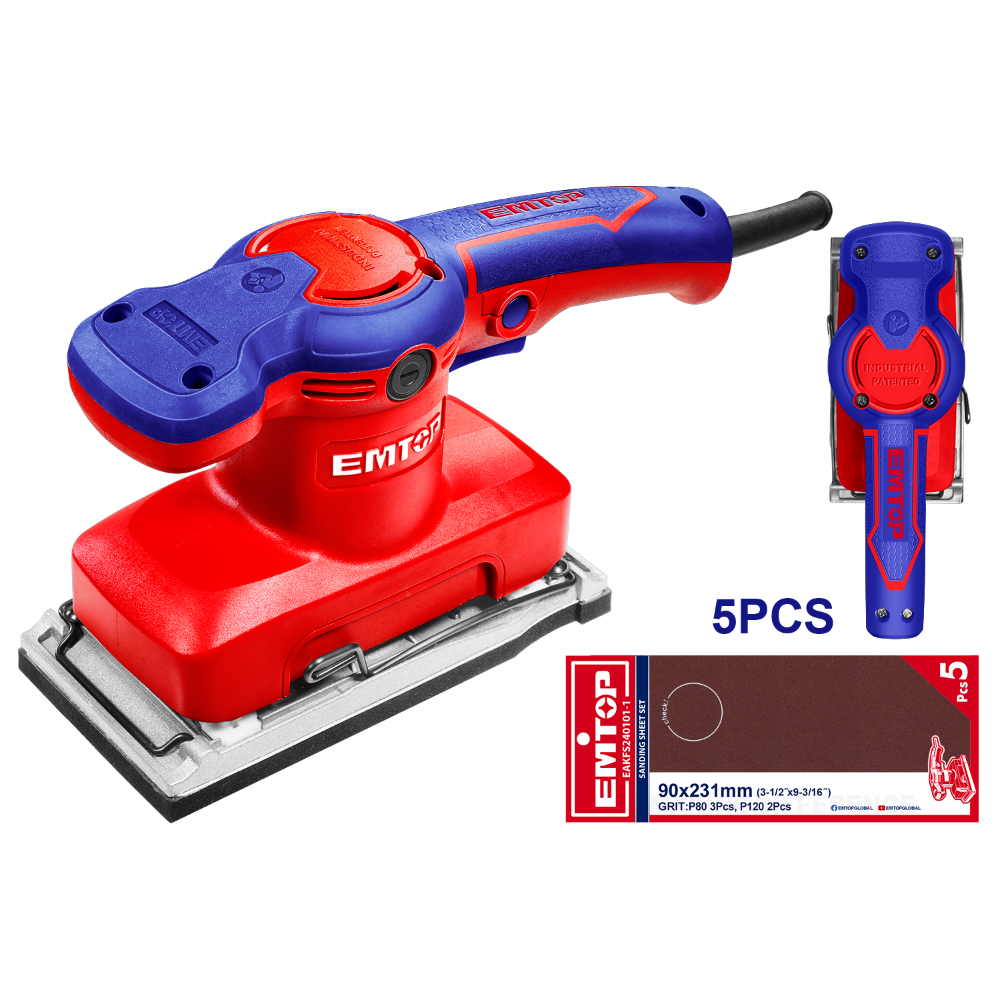 Τάση και ισχύς: Το παλμικό τριβείο EMTOP λειτουργεί με τάση 220-240V~50/60Hz και διαθέτει ισχύ εισόδου 320W. Αυτός ο συνδυασμός τάσης και ισχύος εξασφαλίζει βέλτιστη απόδοση λείανσης για διάφορες επιφάνειες.