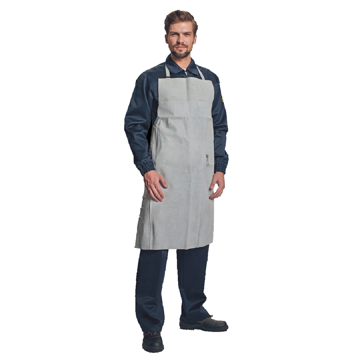 Η ποδιά από γνήσιο δέρμα μοσχαριού, με βαμβακερό λουράκι στο λαιμό ραμμένο με κέβλαρ, προσφέρει προστασία κατά τη διάρκεια συγκολλήσεων ηλεκτροσυγκόλλησης.