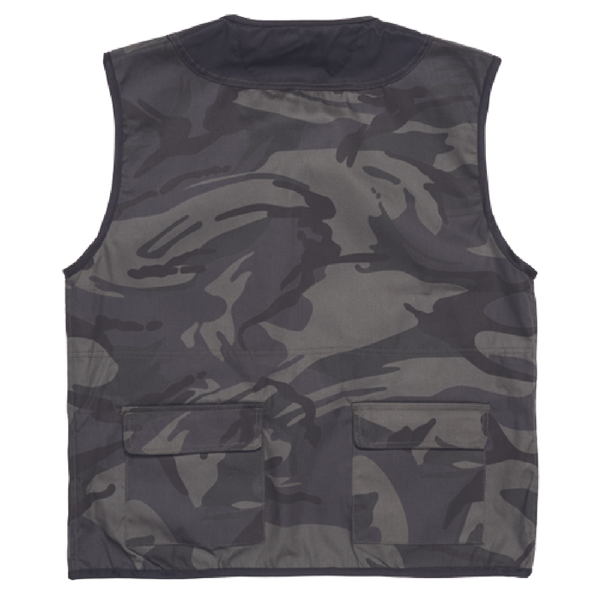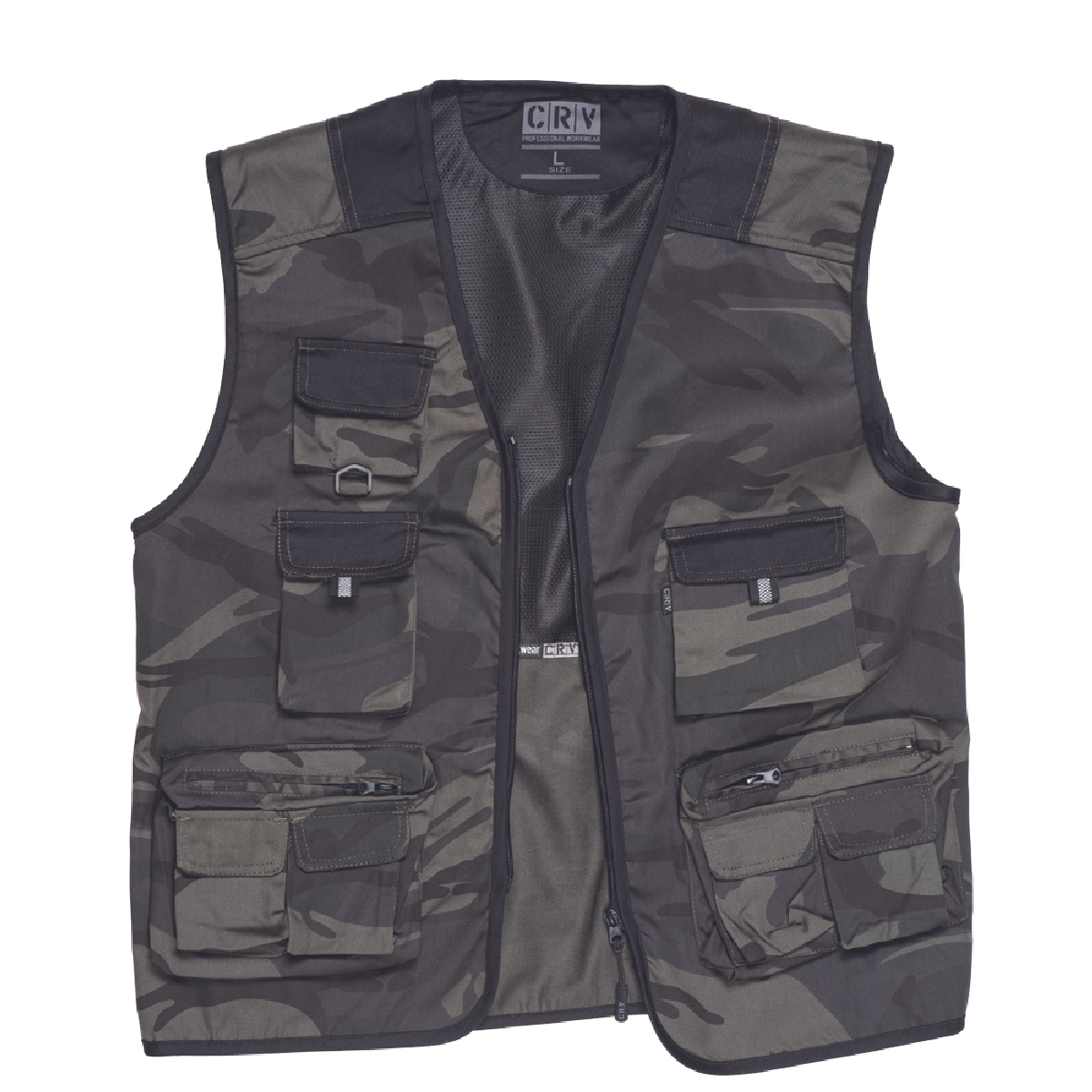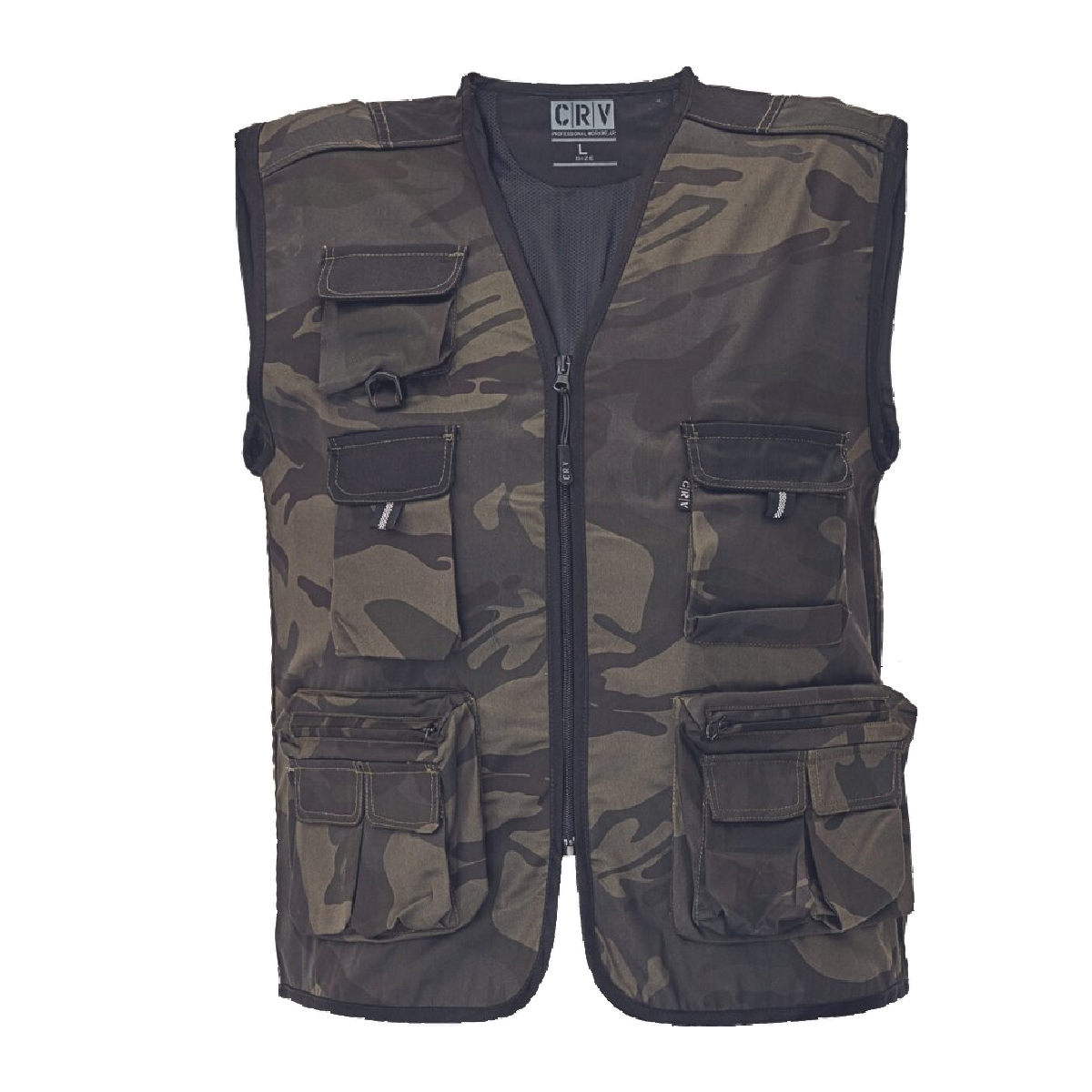 Αυτό το ανδρικό γιλέκο εργασίας CRAMBE σε σχέδιο καμουφλάζ/παραλλαγής είναι η ιδανική επιλογή για εργασίες σε περιβάλλοντα που απαιτούν διακριτικότητα. Κατασκευασμένο από ανθεκτικό υλικό με ποσοστό πολυεστέρα και βαμβακιού, παρέχει άνεση και αντοχή.