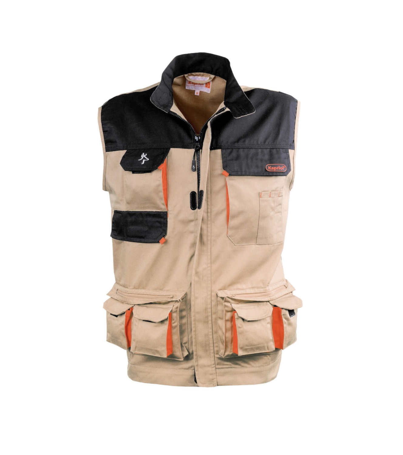 Εργονομική σχεδίαση με πολλαπλές εξωτερικές τσέπες , ενισχυμένο στα σημεία συχνής τριβής με τριπλή ραφή. Σύνθεση υφάσματος 65% πολυεστέρας 35% βαμβάκι. Μπουφάν αμάνικο από σύμμεικτο ύφασμα.