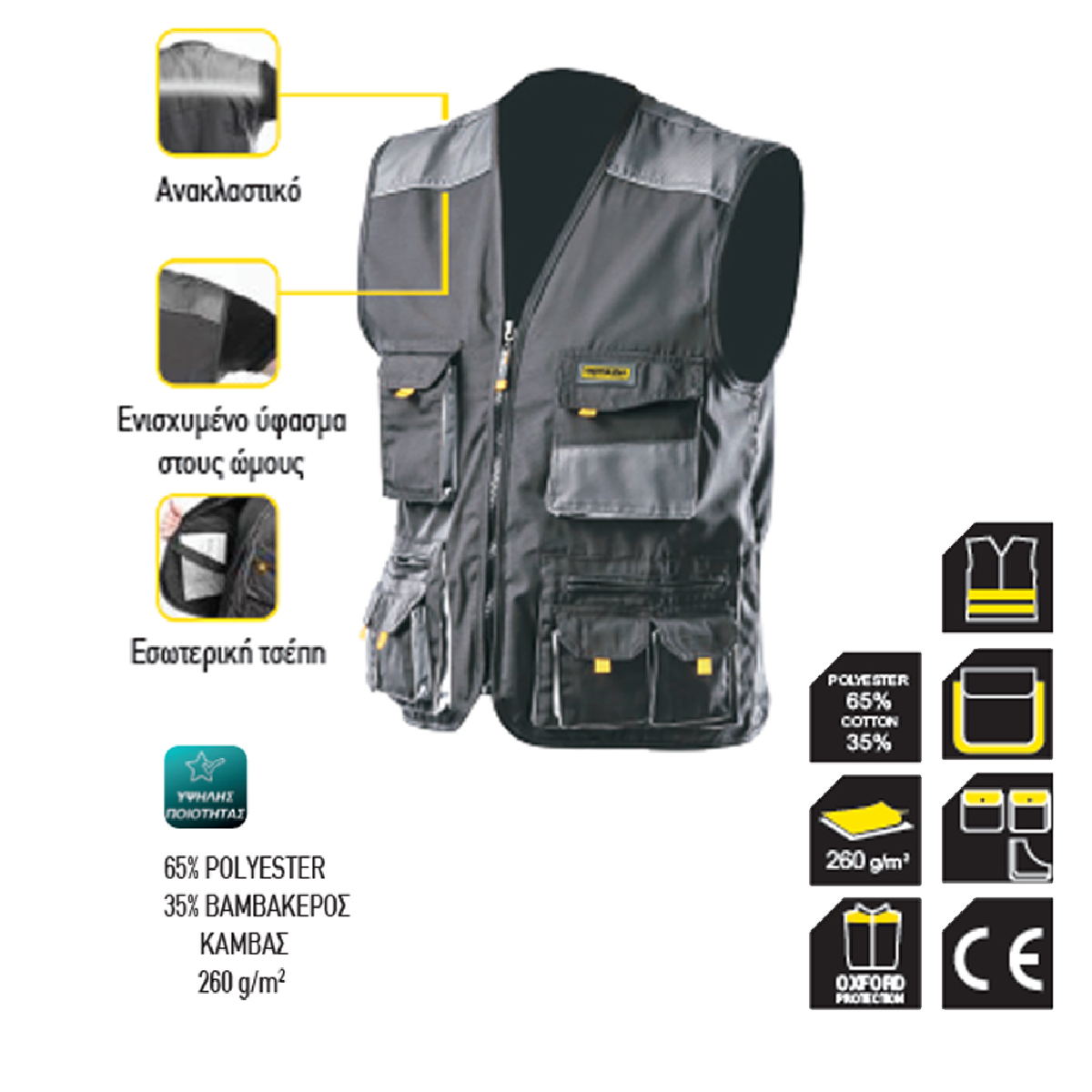Το γιλέκο TOP MASTER με μοντέλο ΓΙΛΕΚΟ XXL 557904 κατασκευάζεται από 65% πολυεστέρα και 35% βαμβάκι. Η άνεση και η ευκολία κίνησης προέρχονται από την ποιοτική κατασκευή, ενώ το μέγεθος XXL εξασφαλίζει άψογη εφαρμογή.