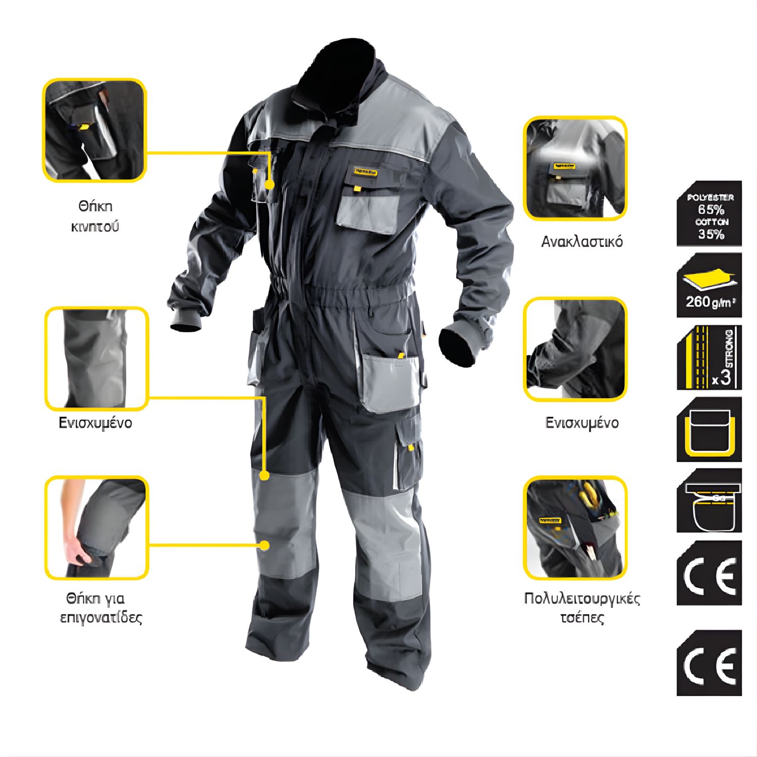 Η ολόσωμη φόρμα Top Master σε μέγεθος M είναι κατασκευασμένη από υψηλής ποιότητας υλικό, συνδυάζοντας το 65% πολυεστέρα με το 35% βαμβάκι για άνεση και αντοχή. Ιδανική για διάφορες εργασίες, αυτή η ολόσωμη φόρμα προσφέρει άνετη εφαρμογή και ανθεκτικότητα.