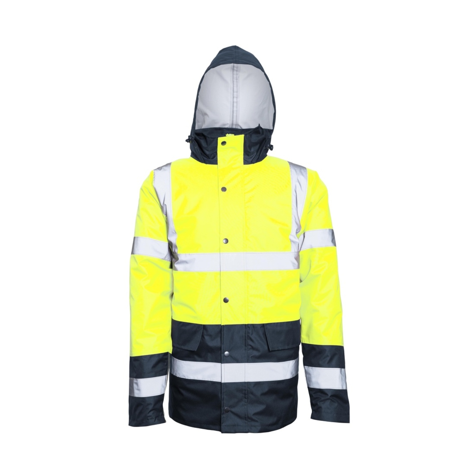 Το μπουφάν εργασίας Neon ανακλαστικό κίτρινο-μπλε είναι ιδανικό για εργαζομένους σε περιβάλλοντα που απαιτούν αυξημένη ορατότητα και προστασία από τις καιρικές συνθήκες. Διαθέτει ανακλαστική ταινία για βελτιωμένη ορατότητα, ενώ το αδιάβροχο και αντιανεμικό του υλικό εξασφαλίζει προστασία από την υγρασία και τον άνεμο. Η κούκουλα και οι πρακτικές τσέπες προσφέρουν επιπλέον λειτουργικότητα, ενώ το χρώμα σε αντίθεση βοηθά στην αποφυγή βρωμιάς. Η σύνθεση του μπουφάν από 100% πολυεστέρα το καθιστά ανθεκτικό και εύκολο στη συντήρηση, ενώ είναι διαθέσιμο σε μεγέθη από S έως 4XL για να καλύψει κάθε ανάγκη.