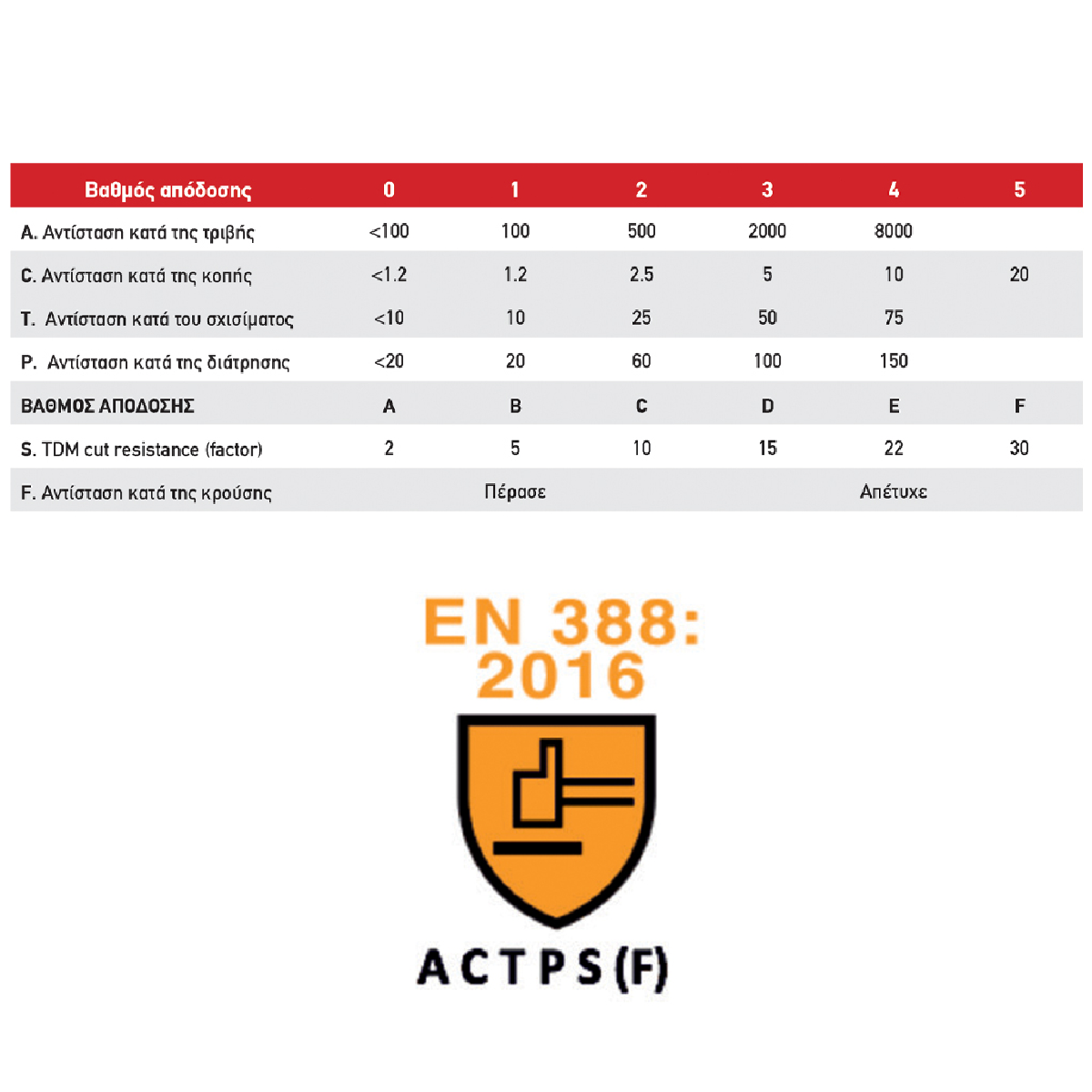 Πρότυπα: EN388:2016+A1:2018 2141X, EN511:2006 X1X, EN ISO 21420:2020